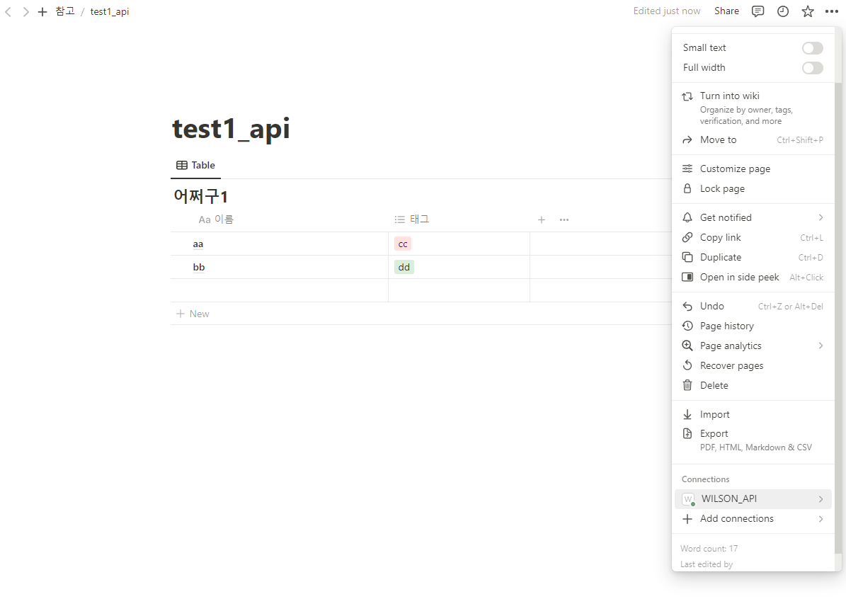 API를 적용할 Notion 페이지로 간다